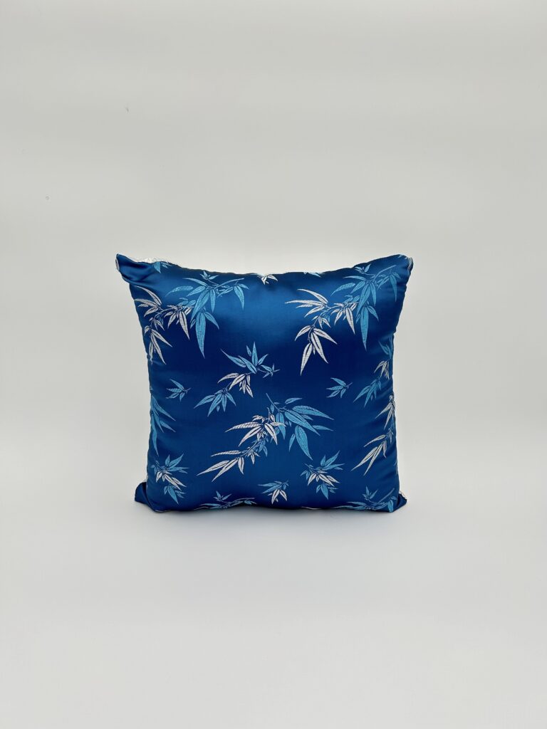This visually appealing and sensual silk throw pillow with blue and silver fabric leaves as its print brings color and the perfect touch of elegance to your home. You can go for a high-end or modern design with this interior gift.