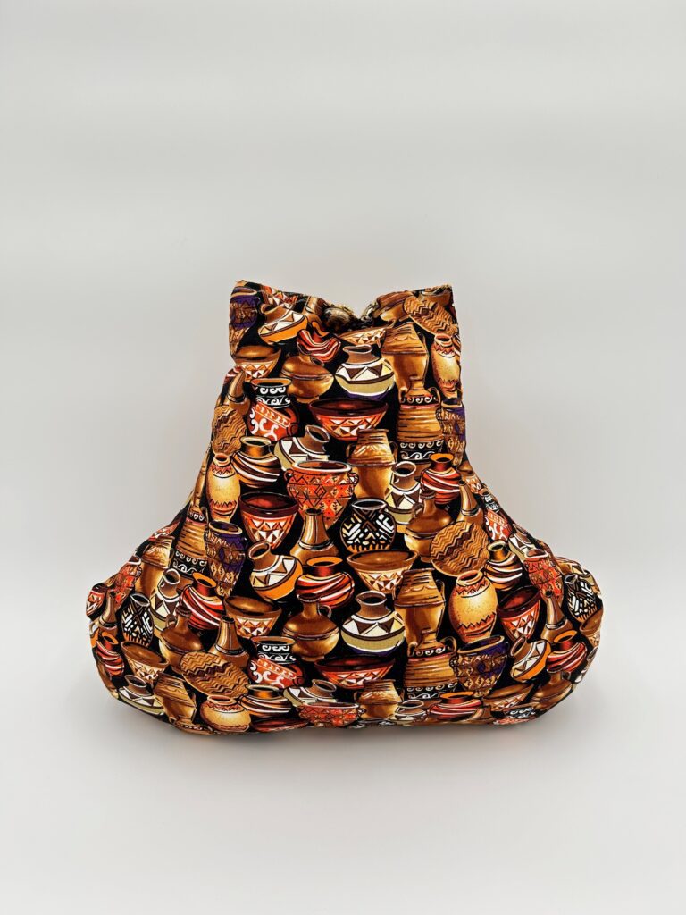 With its multiple shades of gold, brown and tan, serenaded with an “all-over print” design of ancient vases and bowls. As well as a button on each side of the top of this pillow as a closure. This rare decorative accent is a true masterpiece.