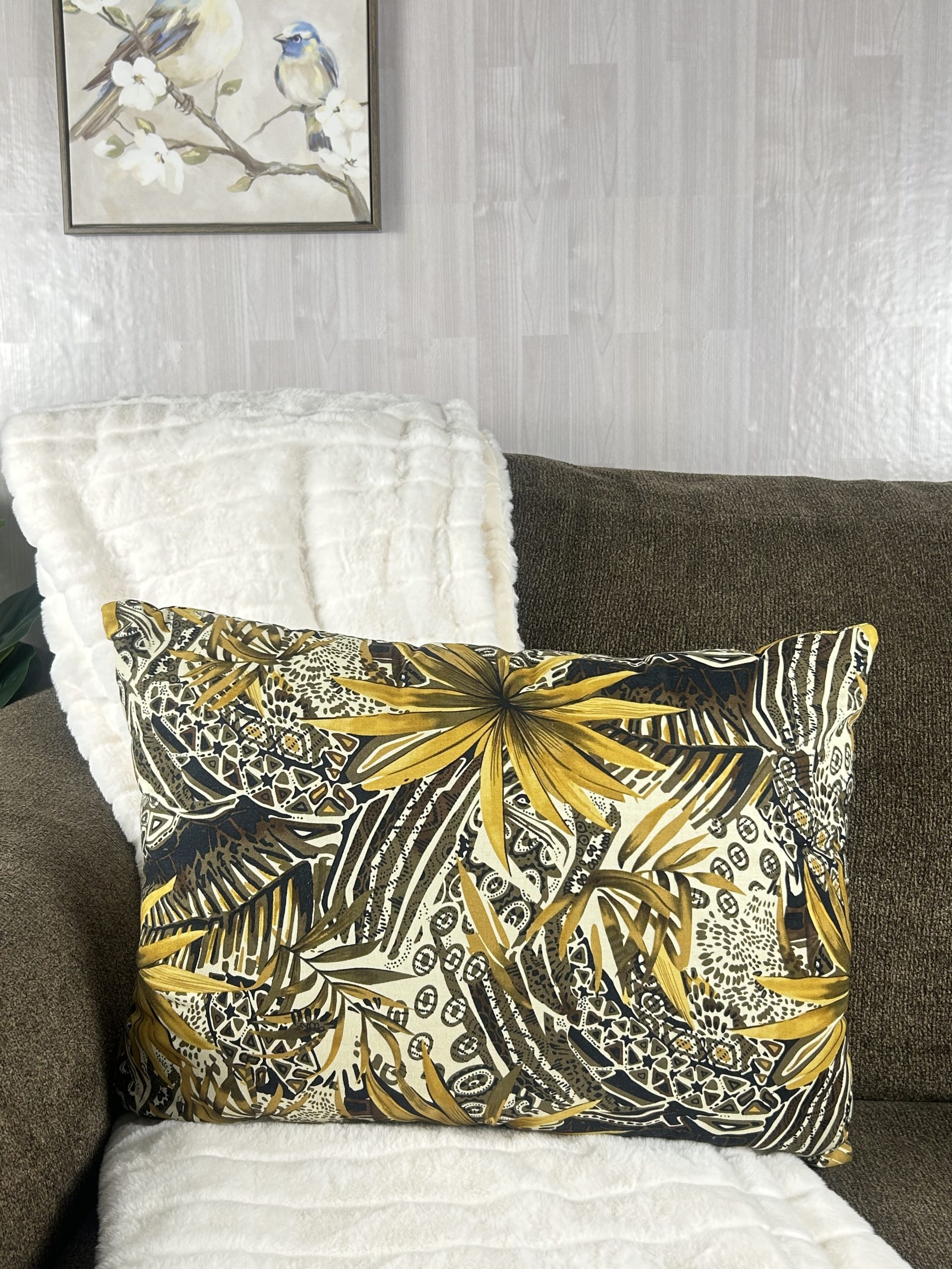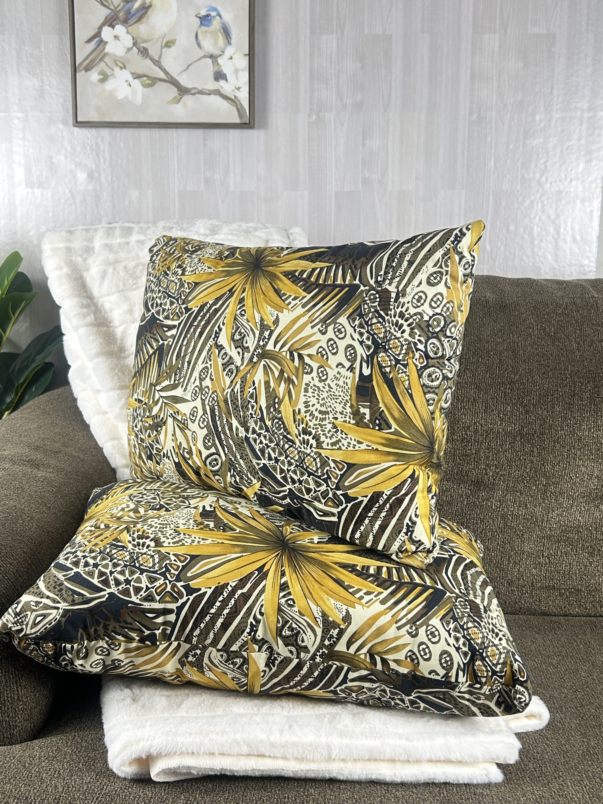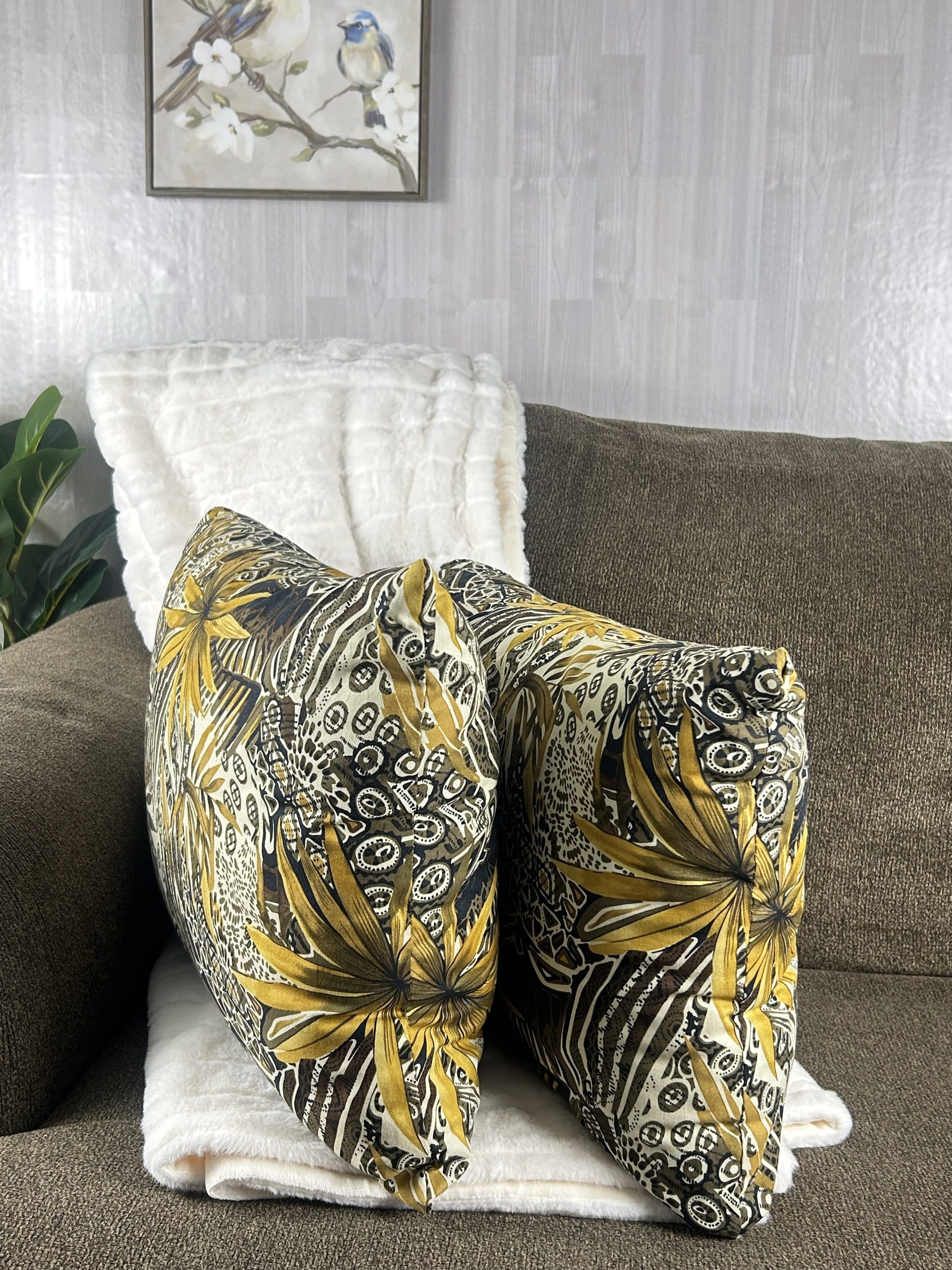 Like our other fancy, brown throw pillows this jungle pillow set immediately brings a touch of class that will make your living space stand out. To complete your golden home decor theme with this brown throw pillow set, add our Dazzling Honey Gold Vase to accompany it.
